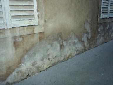 -En cas d'apparition d'une bande humide continue et non de même hauteur sur la base d'un mur, c'est le signe de la présence de remontées capillaires crées par une nappe phréatique. Cette manifestation ne monte jamais plus haut que 3 mètres au dessus du sol et est observable autant sur la face extérieure qu'intérieure du mur.
